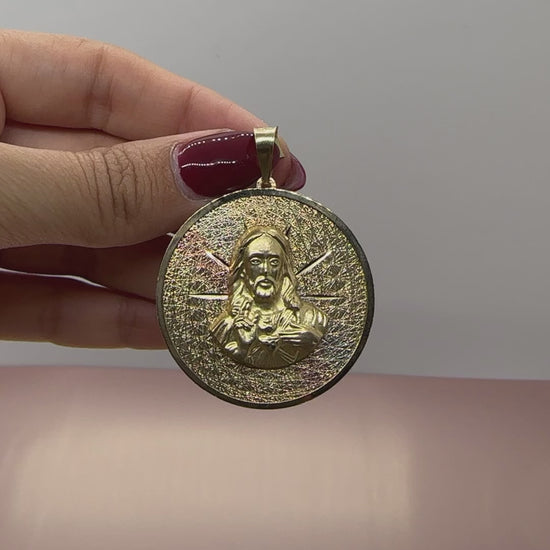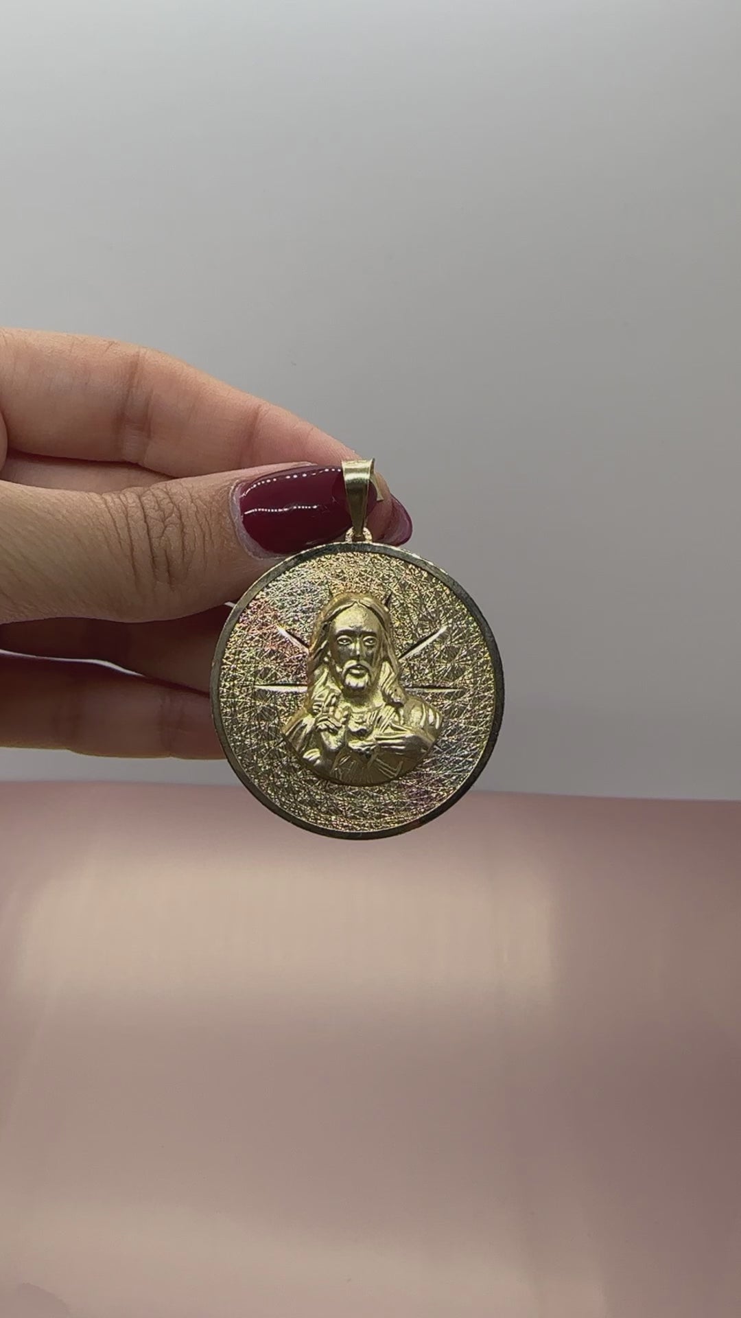 10 karat light Tri Color Duble Sided Pendant, Virgin Guadalupe one side, Jesus on the other.