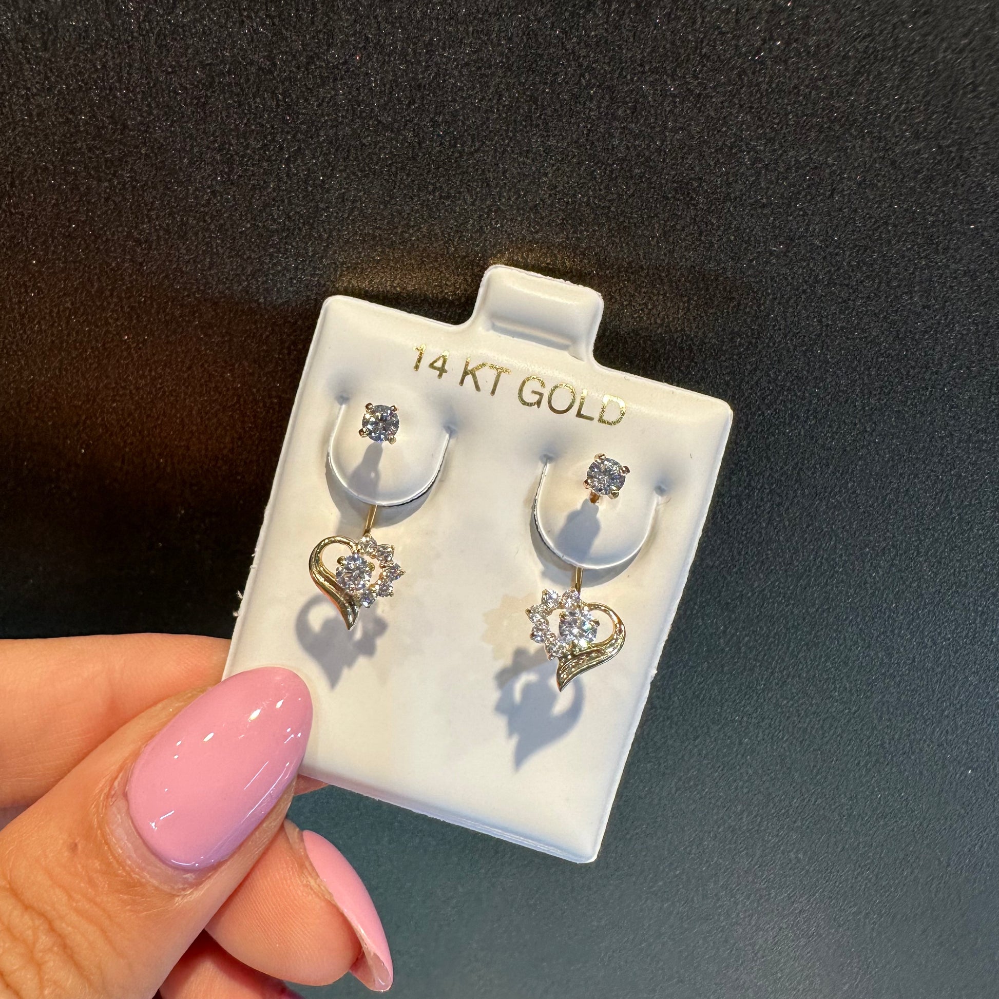 14 Karat Gold Earrings with Twist on Stud. Cubic Zirconia Stone.