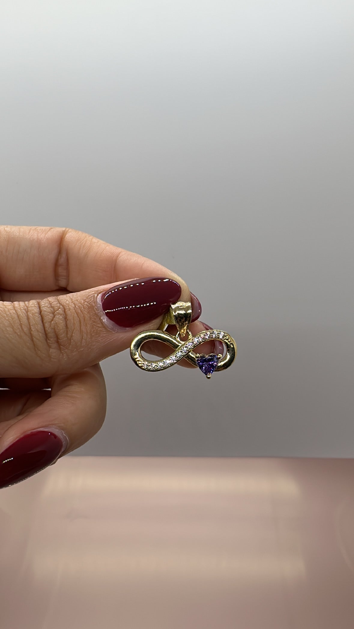 10 Karat Infinity Pendant with Purple Heart Cubic Zirconia