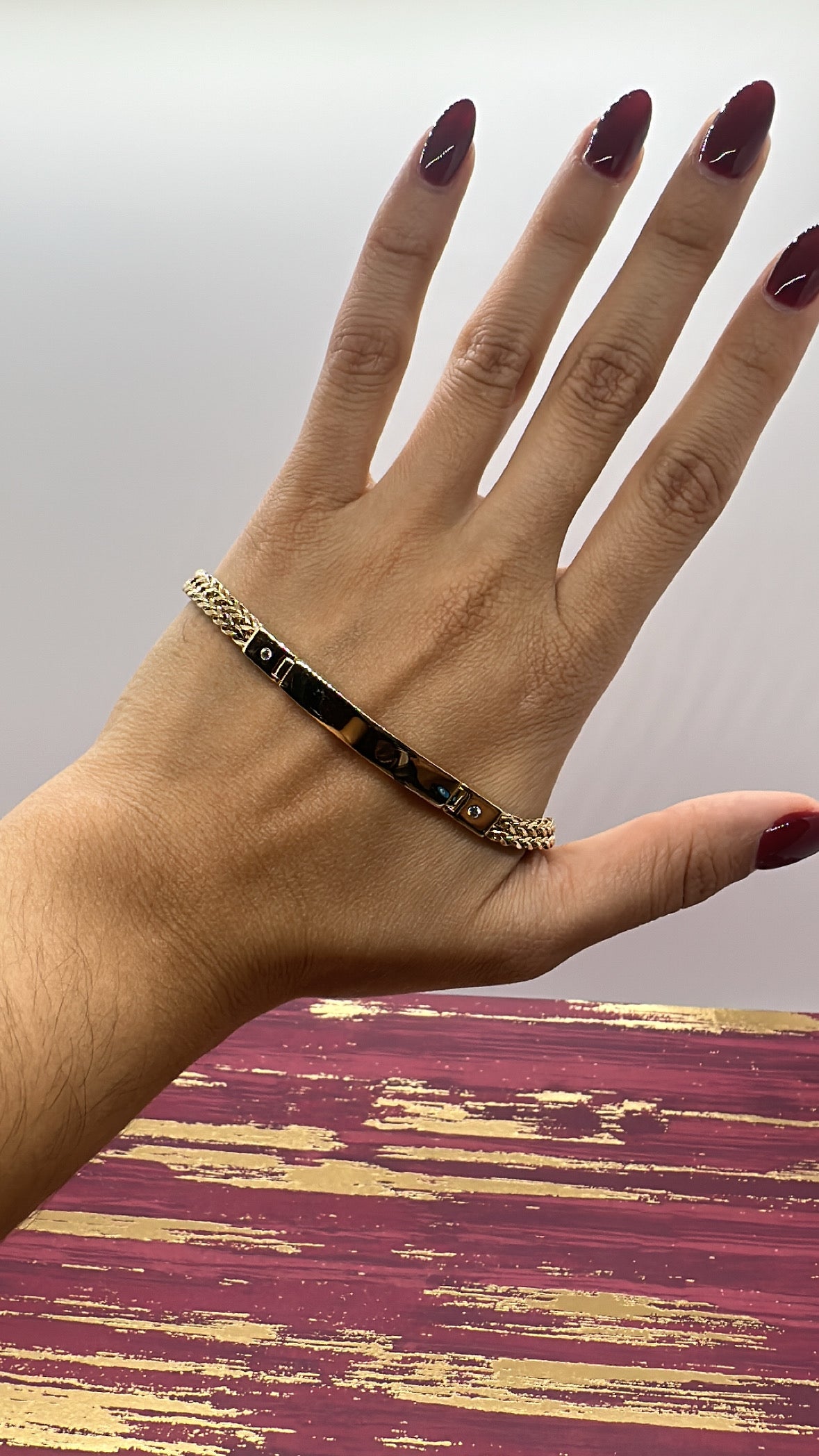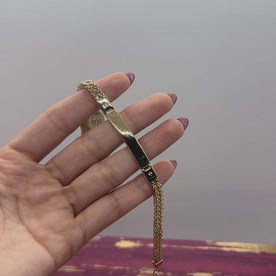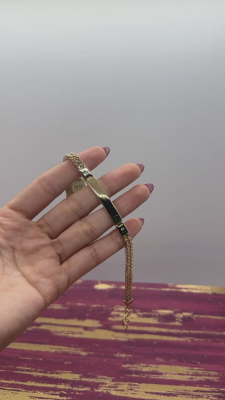 14 karat franco chain bracelet with ID plate, cubic zirconia detail on side of ID.