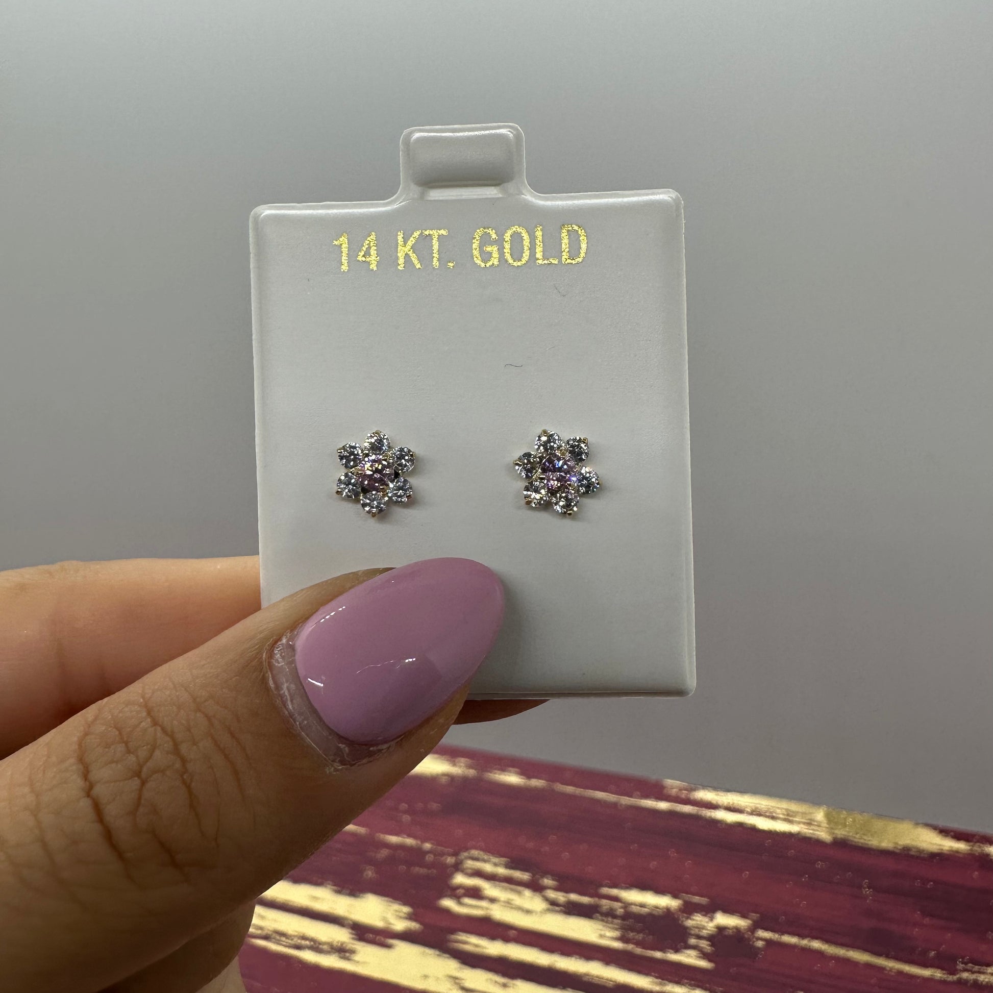 14 Karat Gold Earrings with Silicone Push Back AND Screw on Ball. Cubic Zirconia Stone.