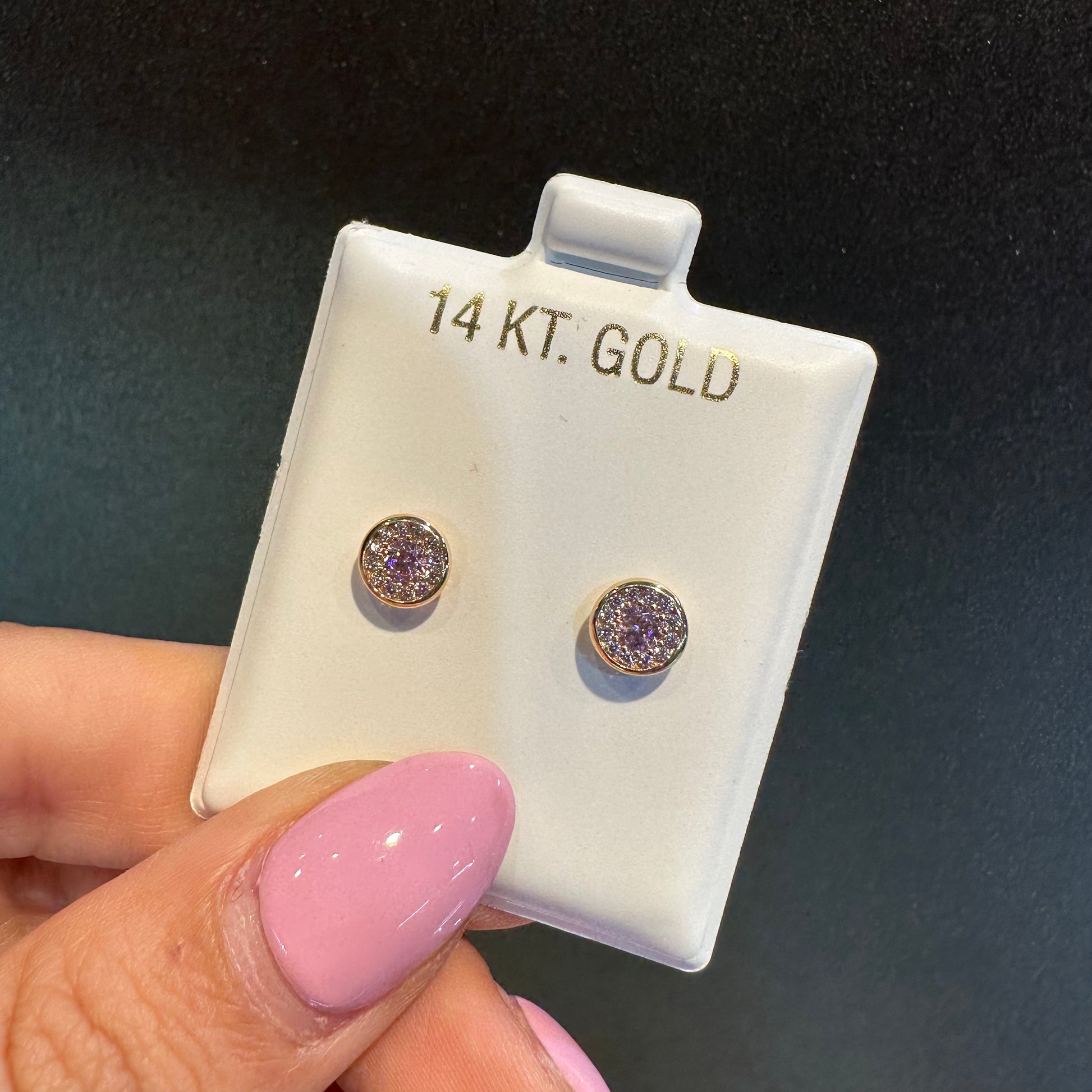 14 Karat Gold Earrings with Silicone Push Back AND Twist on Ball. Cubic Zirconia Stone.