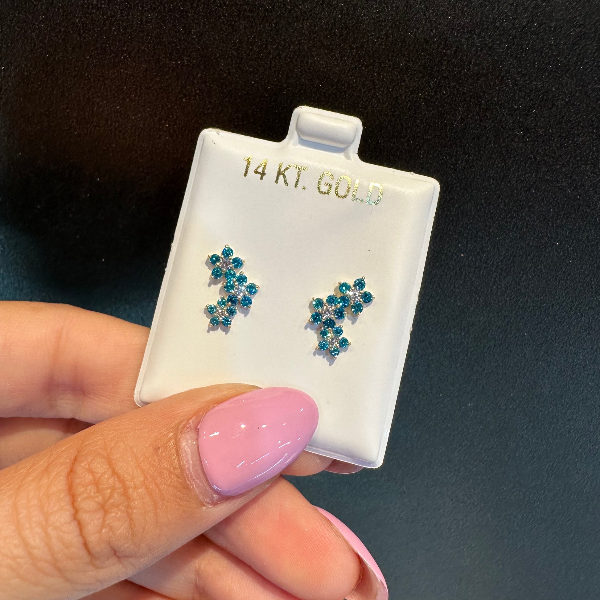 14 Karat Gold Earrings with Silicone Push Back AND Screw on Ball. Cubic Zirconia Stone.
