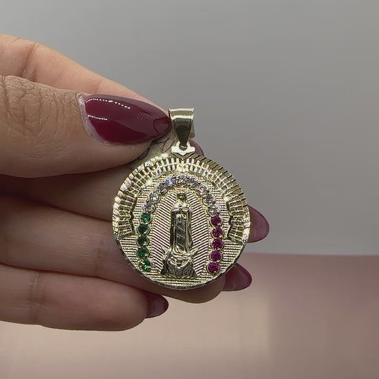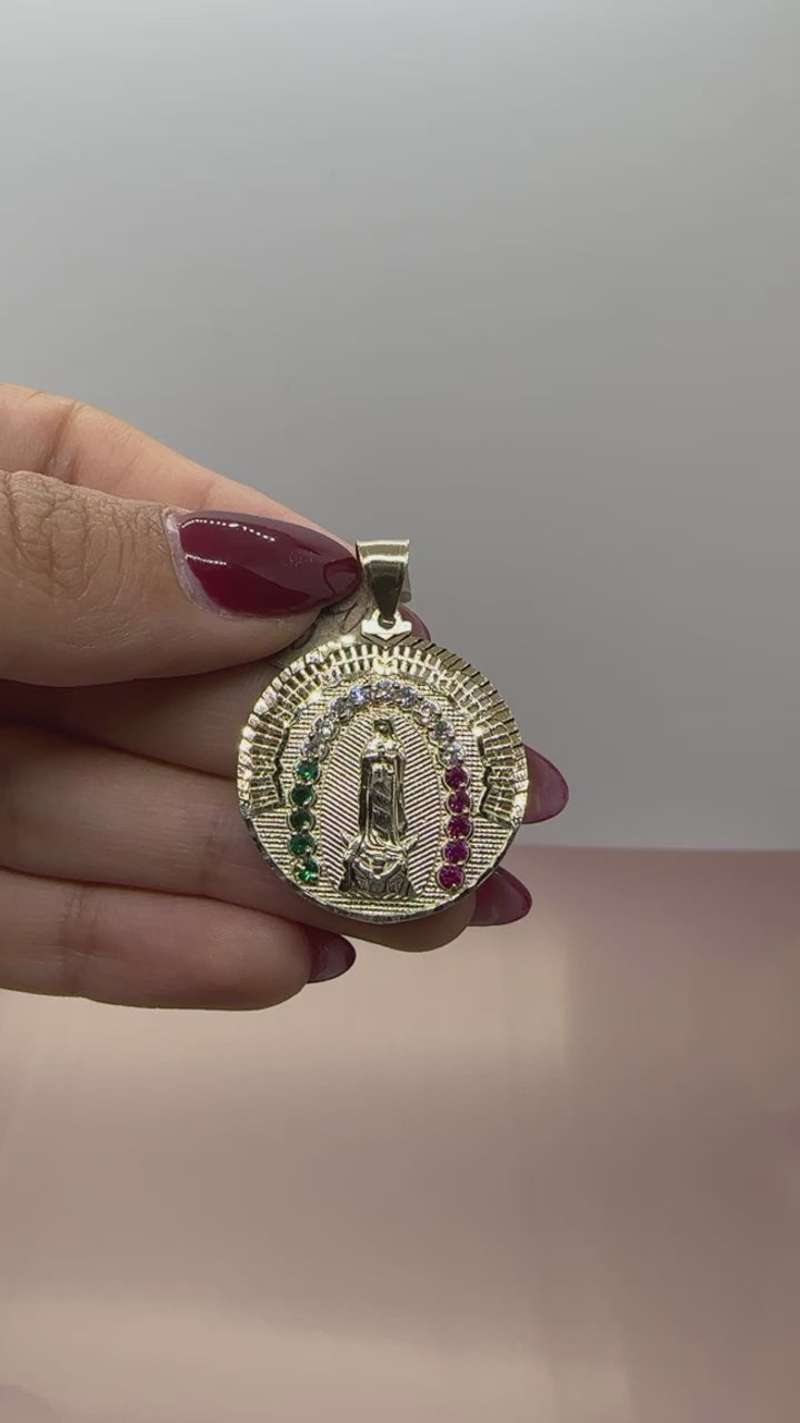 10 Karat Lite Virgen Guadalupe Pendant with Cubic Zirconia