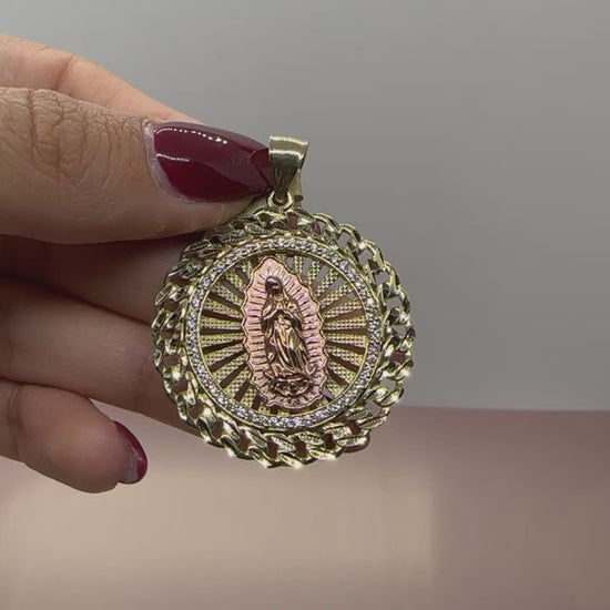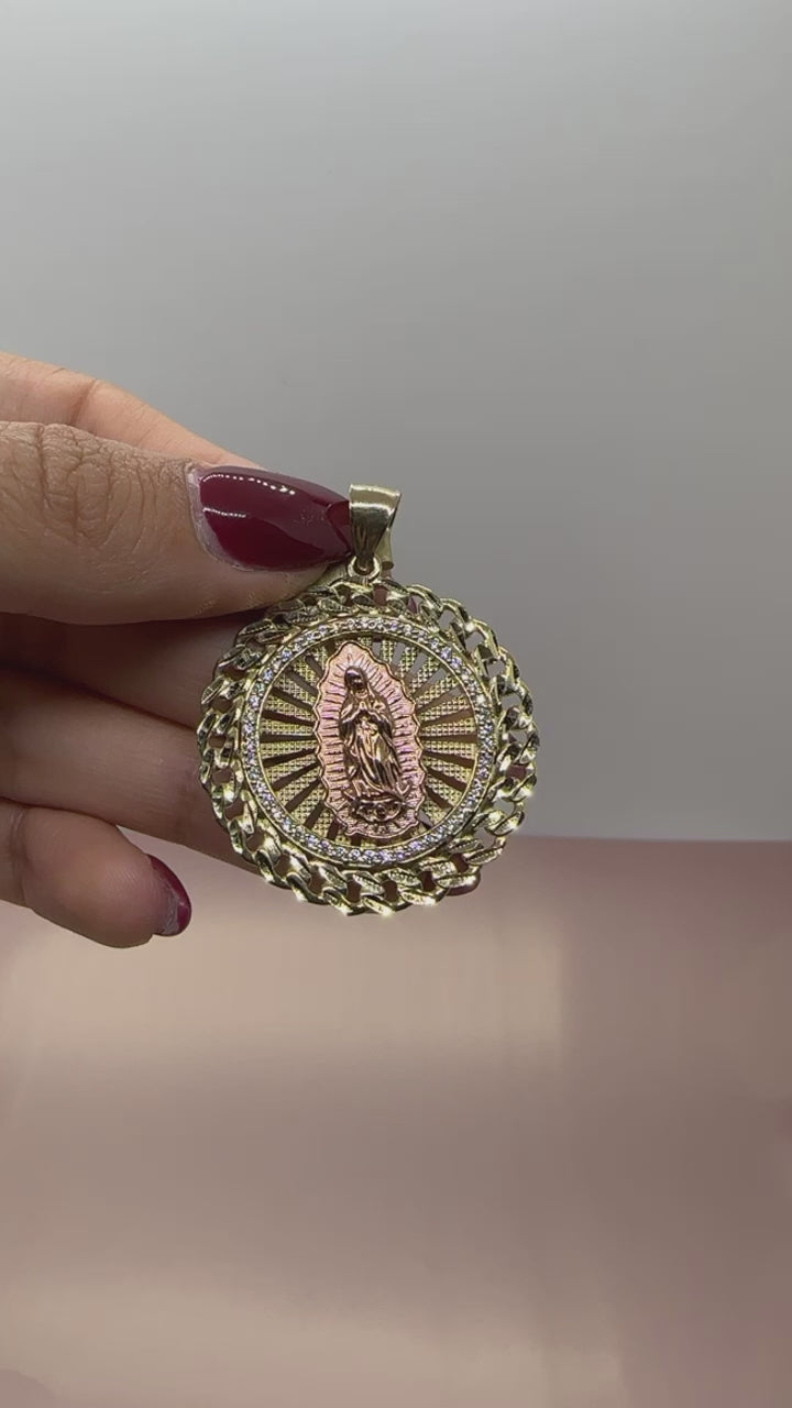 10 Karat with Rose Gold Virgen Guadalupe Pendant and Cubic Zirconia